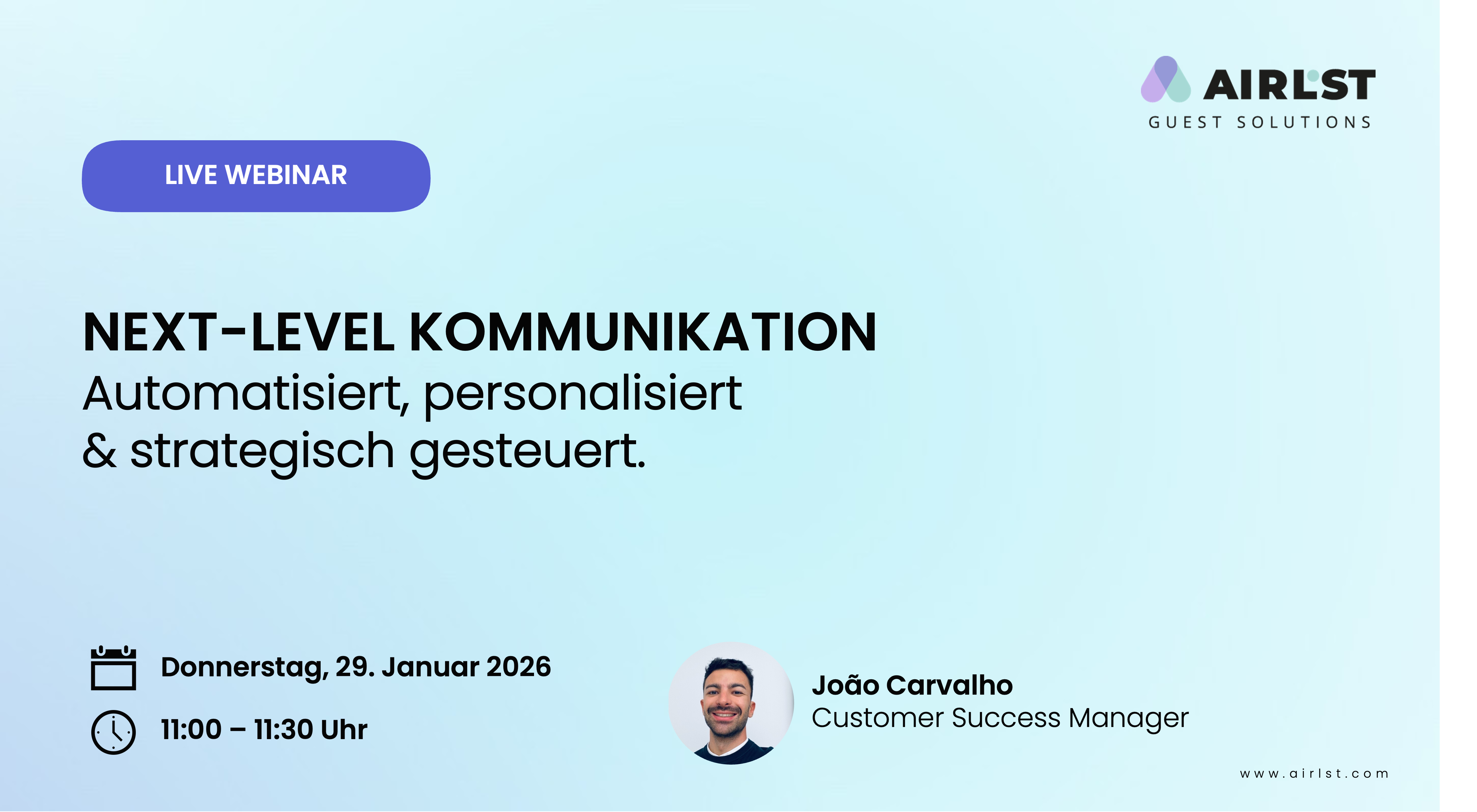 In diesem Webinar zeigen wir Ihnen, wie Sie mit der AirLST Suite Ihre Eventkommunikation strategisch planen und auf ein neues Level heben.